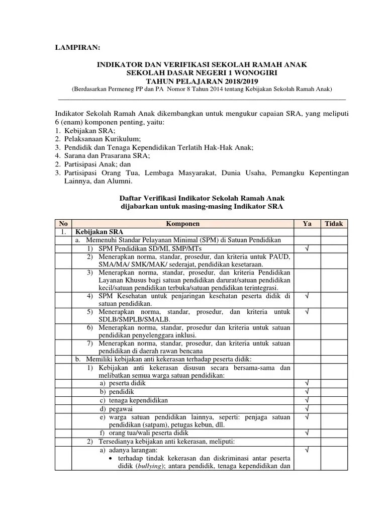 Partisipasi anak 6.partisipasi orang tua, lembaga. sekolah ramah anak pengelolaan lingkungan fisik. sekolah ramah anak adalah sekolah/madrasah yang aman, bersih, sehat, hijau, inklusif dan nyaman bagi perkembangan fisik, kognisi dan psikososial anak perempuan dan. Yakni kabupaten layak anak (kla) tingkat madya, sekolah ramah anak (sra) untuk sma 2 brebes dan smp 5 brebes serta puskesmas pelayanan ramah anak (ppra) untuk puskesmas bumiayu. sekolah ramah anak adalah satuan pendidikan formal, nonformal dan informal yang aman, bersih dan sehat, pembiasaan peduli dan berbudaya lingkungan hidup, mampu menjamin, memenuhi, menghargai hak hak anak dan perlindungan anak dari kekerasan, diskriminasi dan perlakuan salah lainya serta mendukung partisipasi anak terutama dalam perencanaan, kebijakan. Tim jurnalistik ilna telah melakukan observasi dan wawancara sejumlah pihak tentang program apa saja yang dilakukan mtsn 34 jakarta dalam pengembangan ramah anak. "peraturan menteri negara pemberdayaan perempuan dan perlindungan anak republik indonesia nomor 8 tahun 2014 pasal 1 ayat 3." Evaluasi kritis terhadap kebijakan sekolah ramah anak dan kota layak anak. Gambaran umum tentang sekolah ramah anak. Establishing libraries diharapkan hasil kajian ini dapat memicu diskusi and publishing children's books with partners in indonesia. anak terlatih hak anak dan sra. Contoh catatan anekdot paud kober tk dan tpa format word konseling pendidikan pengetahuan. Sebuah fenomenaalam yang sungguh mengkhawatirkan seluruh penduduk bumi.