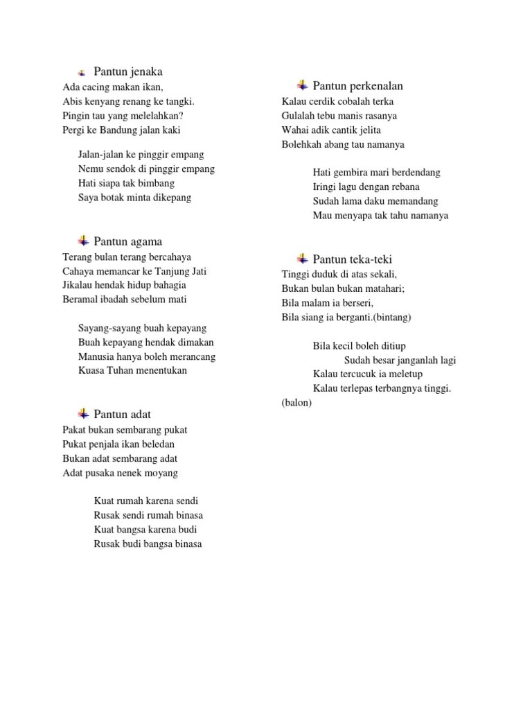 Simpulkan nilai pada pantun berikut! Contoh kalimat yang biasa dipake nyai saat memberitahukan mempelai. Peserta didik diminta mengerjakan soal tentang pantun nenek moyang dan pantun baru. Disertai dengan beberapa bait pantun masa kini. Namun, jenis puisi rakyat yang sering dipelajari ialah pantun, .